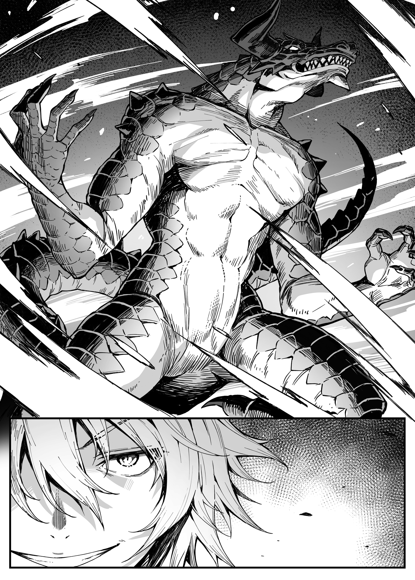 Ashikaga nhảy về phía Tsukijima và tra kiếm lại vào vỏ để tích tụ cho một đòn rút kiếm khác, nhưng Ignis đã có ý định khác. Con thằn lằn vung chiếc đuôi dày của nó với một tiếng vút mạnh mẽ. Tuy nhiên, Ashikaga đã kịp thời né được, chỉ để rồi bị một cú đá vòng cầu trời giáng của Tsukijima, người đã di chuyển sang phía bên kia của cậu ta, làm cho gập người và bay đi vài mét.