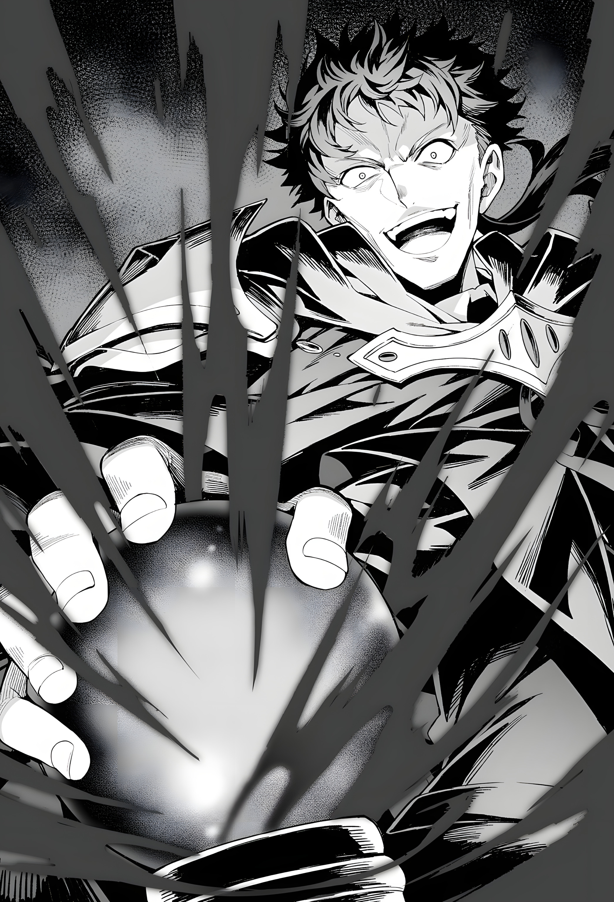 Sanada rút dao, không chút do dự rạch tay trái, nhỏ máu lên những cái xác và quả tim, cuối cùng đặt tay phải lên quả cầu thủy tinh như đang niệm chú. Ngay lập tức, quả cầu phát sáng đáp lại, và luồng ma lực đen kịt phun trào từ ba cái xác.