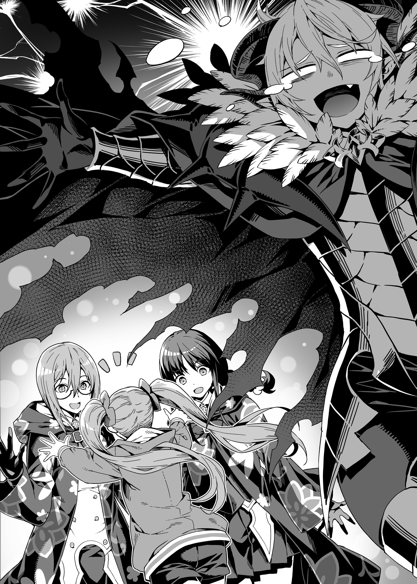 Phía sau tôi, Risa nâng thanh trường kiếm của mình lên trong khi Satsuki rút ra một cây trượng gỗ.