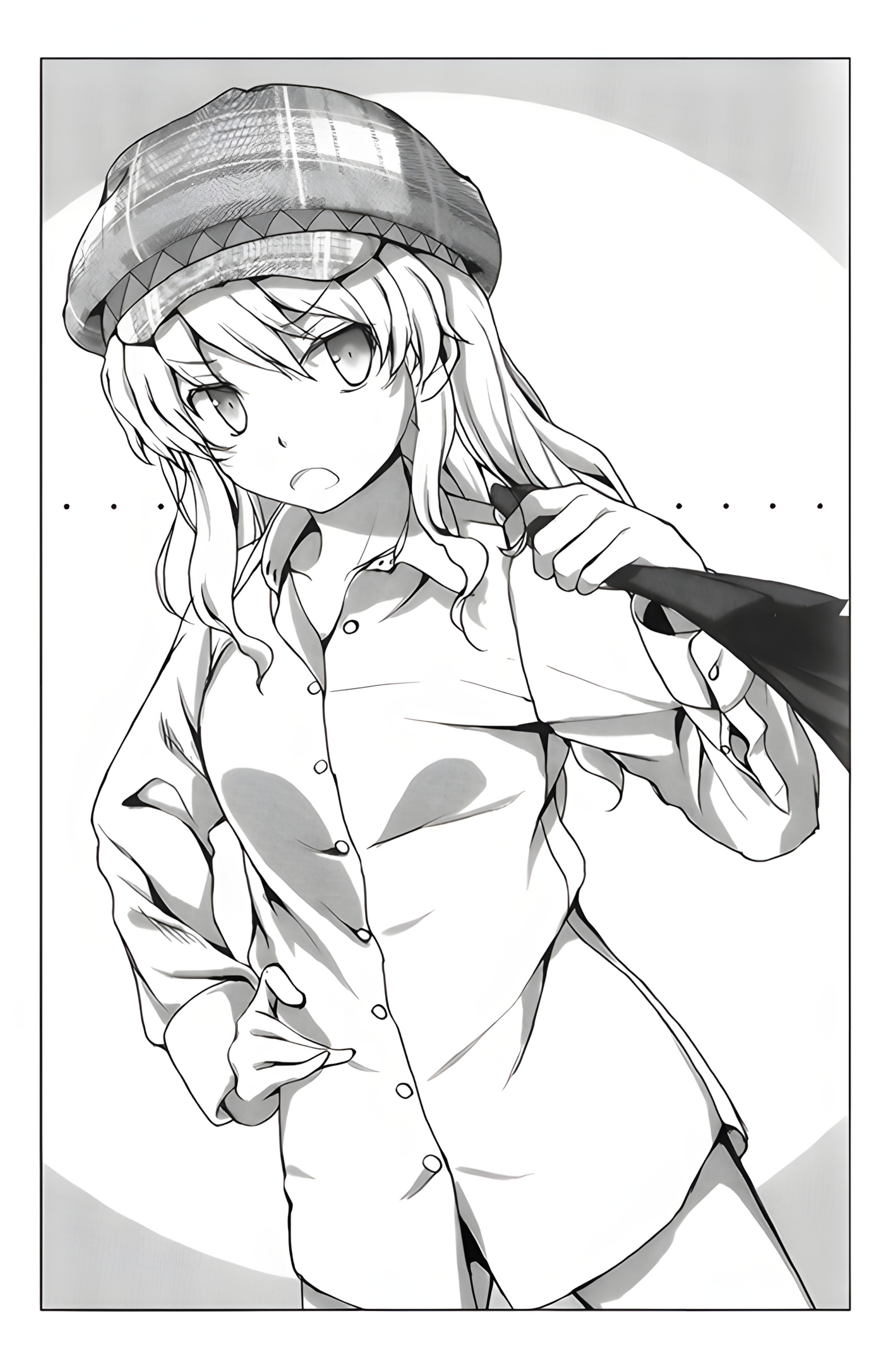 "Thử đặt một giả thiết nhé. Nhìn từ hiện trạng gần đây, việc Ryugajou Nanana khiêu chiến toàn bộ các Di tích cổ đại trên thế giới không chừa một mảnh, vơ vét không sót một món bí bảo nào ẩn giấu trong đó... Chuyện hoang đường như thế ngay cả tôi cũng không dám tưởng tượng. ...Tóm lại, nếu chuyện đó là thật, thì rốt cuộc cô ta đã làm thế nào chứ? Gia tộc Konā chúng tôi sở hữu lịch sử 500 năm, nhưng những bảo vật có được nếu nhìn từ quy mô toàn thế giới thì cũng chỉ như muối bỏ bể. Vậy mà chỉ trong vòng 3 năm ngắn ngủi, một thiếu nữ đơn độc lại có thể quét sạch sành sanh tất cả, không phải quái vật thì là gì?"