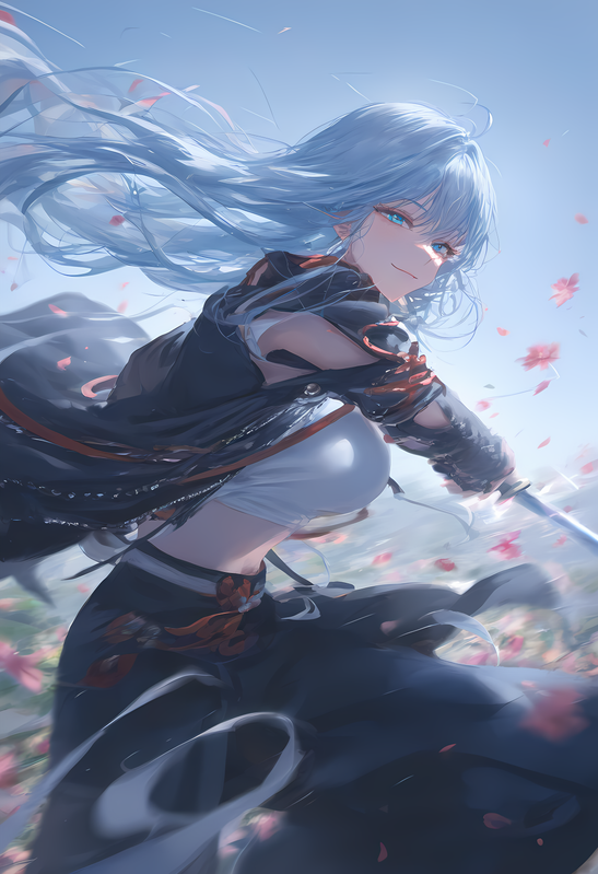 Đông Bách Kiếm của cô nhẹ nhàng vẽ một đường trong không trung, theo sau là những cánh hoa đỏ bay lượn trong một vũ điệu nhẹ bẫng.