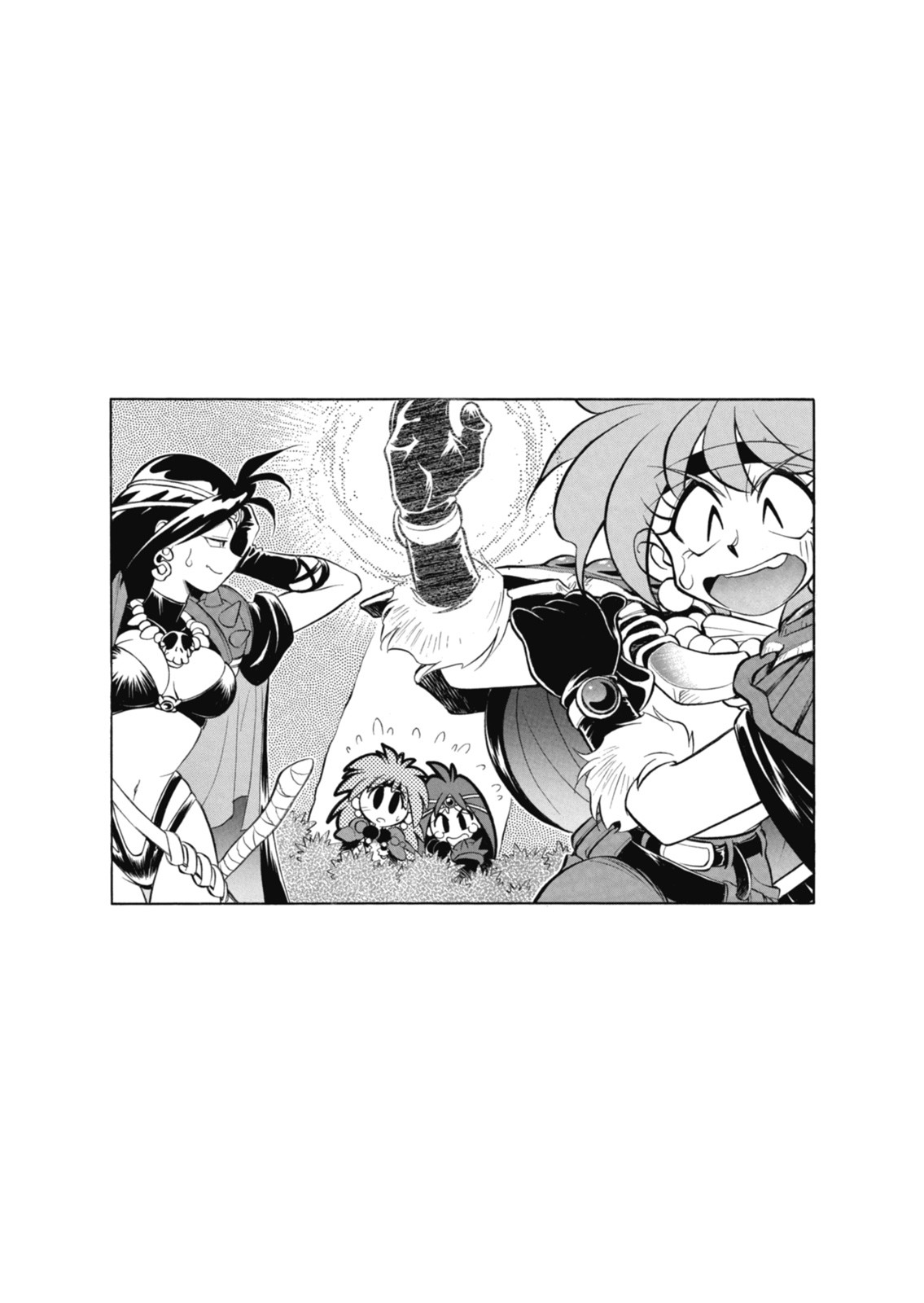 “Hừ! Ra thế!” Chợt trở nên phấn khởi khi nhận ra điều đó, mắt Naga sáng hẳn lên, rồi cô ấy hất tấm áo choàng không vì lý do gì cả. “Nếu vậy, chúng ta sẽ xông thẳng vào, làm gỏi tên pháp sư đó nhanh gọn rồi nhận tiền thưởng cho riêng mình nào! Hố hô hô hô!”