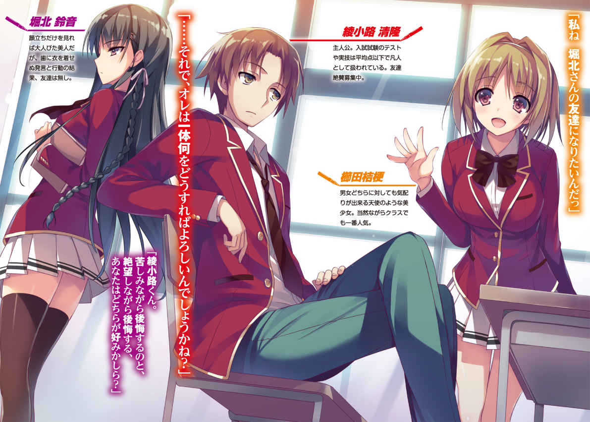 Nhưng mà nó chân thực tình huống còn lại là tất cả đều do tự thân thực lực tới so sánh, hoàn toàn thực lực chủ nghĩa giáo dục trường học. Nhập học trắc thí tổng hợp điểm số ( bao quát thi viết phỏng vấn ) dựa theo cao đến thấp, từ A lớp bắt đầu phân phối. Ngay từ đầu năng lực cũng rất cao người tất nhiên bị ( được ) phần đến A lớp. Mà bởi rằng năng lực thấp người thì sẽ bị phân phối đến D lớp, bởi vậy nhập học sau point tất nhiên sẽ bị vượt qua kéo vượt qua khai. Ưu tú người sẽ bị làm ưu tú tồn tại mà bị ( được ) trịnh trọng xem xét mà đối đãi. Bởi rằng còn hơn thi viết, phỏng vấn, cũng đúng là cá nhân ngoại tại chiếm tỉ trọng lớn hơn nữa, sở dĩ D trong lớp tất nhiên tập hợp một đống vấn đề nhân vật ( không tốt phẩm ).