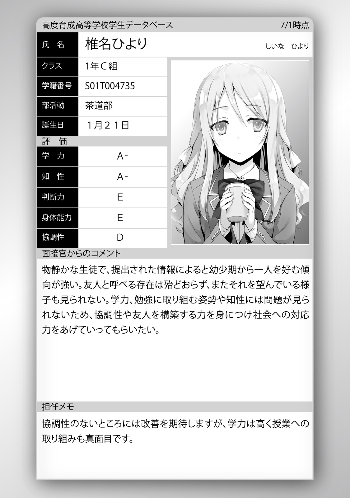 "Cái gọi là hội học sinh cùng lớp trưởng, biểu hiện ra nhìn như chẳng lẽ không có bất luận cái gì quyền lực. Đại bộ phận học sinh đều cho rằng nó là không có giá trị, chỉ đem nó xem như tiêu hao thời gian tồn tại, sở dĩ chỉ có rất ít nhất bộ phần người muốn đi đảm nhiệm "